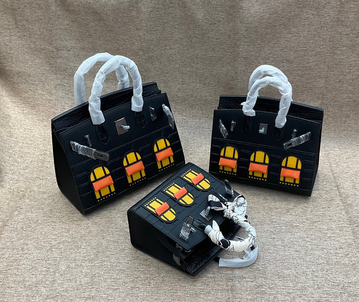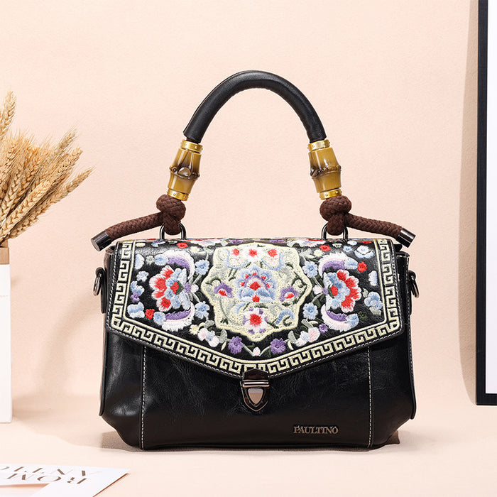 Embroidered Vintage Leather Handbag – Handheld Top-Handle Bag
