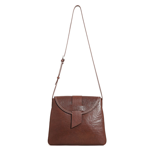 Vintage Top-Grain Leather Crossbody Bag – Handmade Saddle Bag for Women